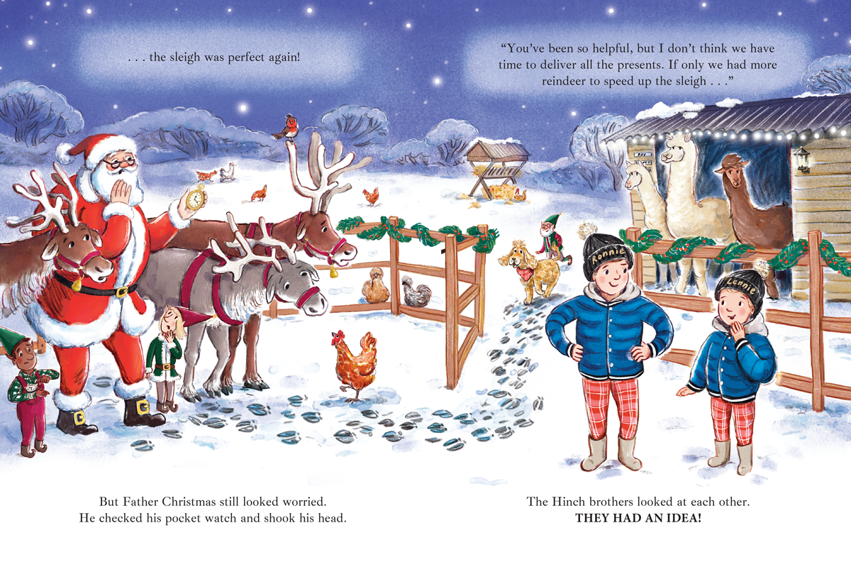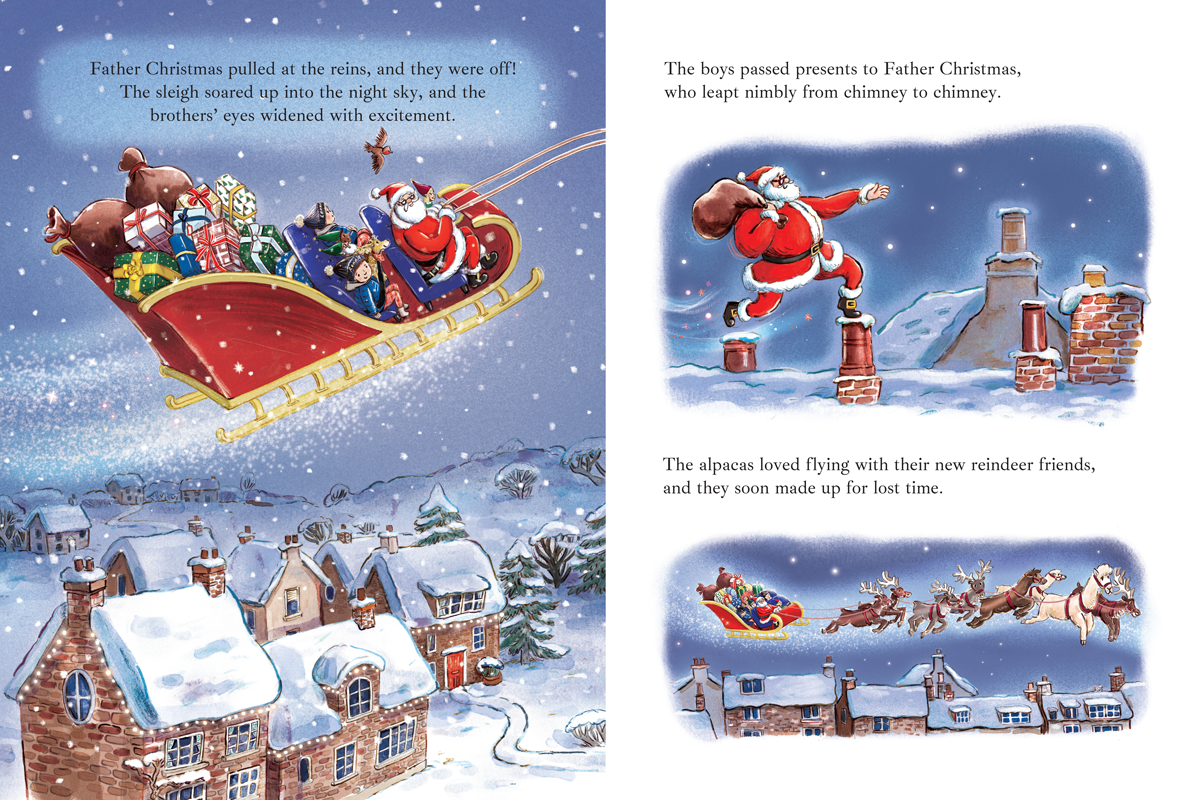 "The big double-page spread of the Alpacas and Reindeer flying over London has to be my favorite. Sophies Alpacas are so comical, I couldn't help but giggle when illustrating them."