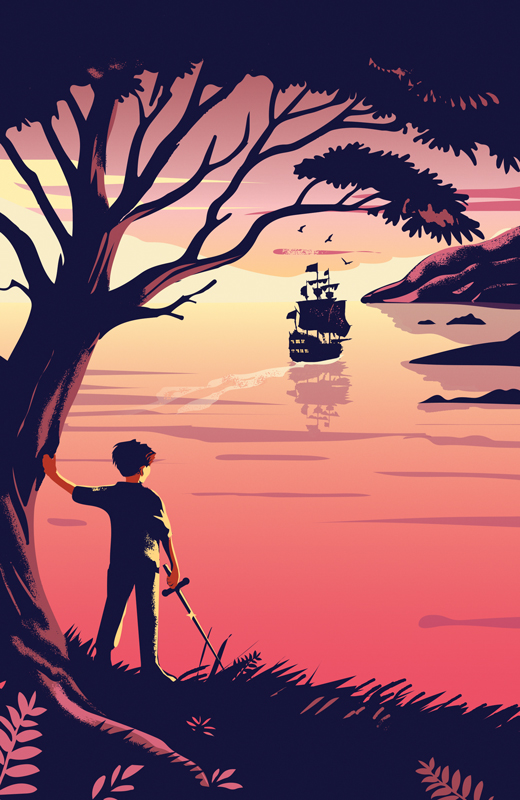 Harry's richly coloured and contemporary illustrations are the perfect fit for bringing book covers to life. He has a brilliant eye for visual storytelling, cleverly using objects within the artwork to form new shapes, for example the striking skull in his Treasure Island cover.